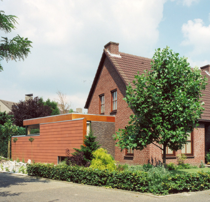 "Deurne, verbouwing woonhuis van de Heuvel aan de Vecht door Theo van den Acker. De in ruimtelijke en strcuturele zin krachtige vormgeving van de aanbouw geeft, ondanks haar eigenzinnig karakter, de woning een duidelijke meerwaarde."